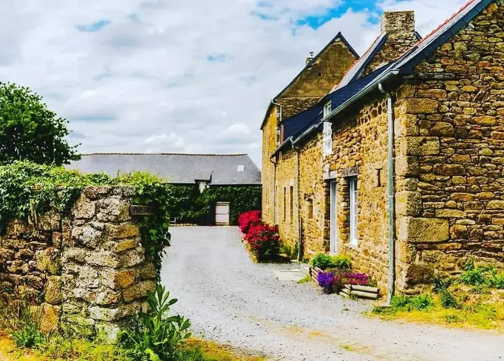 Bâti en granit breton du XVe siècle, le manoir conserve ses murs d'origine dans toute leur épaisseur, un isolant naturel qui rafraîchit l'espace en été et retient la chaleur en hiver. Aucun faux plafond ni revêtement ne vient dissimuler la pierre brute.